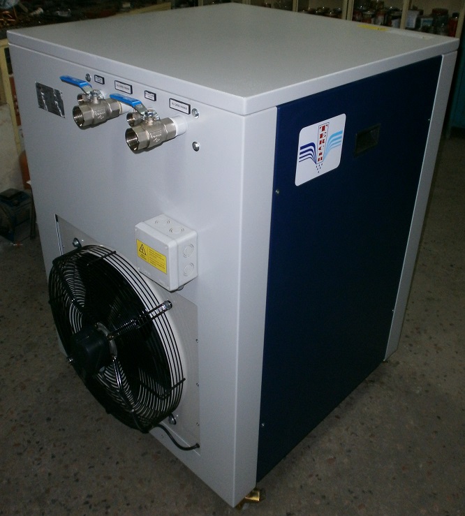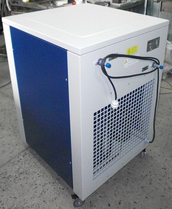 Bakır boru eşanjörlü, pompalı, esnek hortumları ile uzun ömürlü bir su soğutucu olup hassas sıcaklık aralığı ile istenilen su sıcaklığı sabit tutulur.