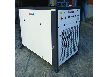 Cihaz, su devresine kapalı devre olarak bağlanır. 2 adet 7 hp kompresörlerin devirlerini hız kontrol cihazı ile set edilen sıcaklık değerini hassas bir şekilde kontrol etmektedir.